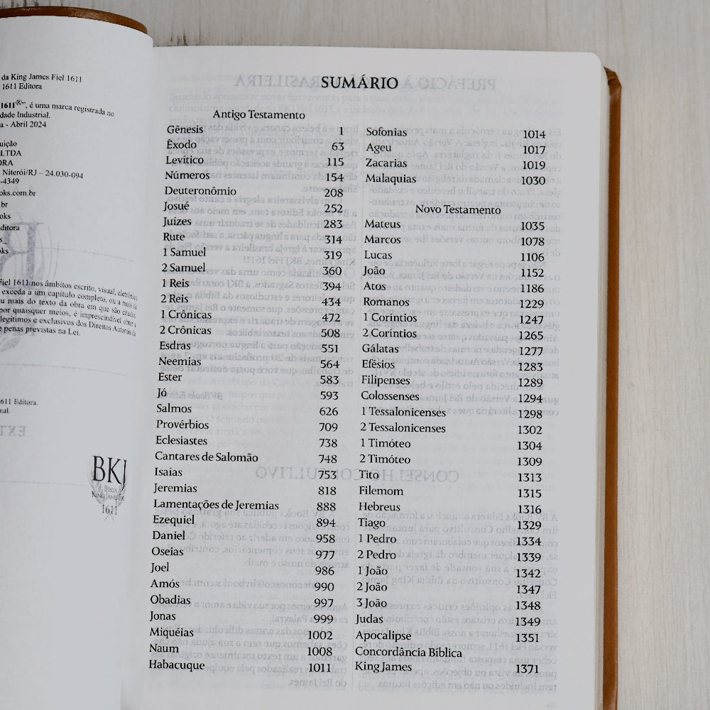 Bíblia King James Fiel 1611 | Extra Gigante | Capa Luxo Castanha
