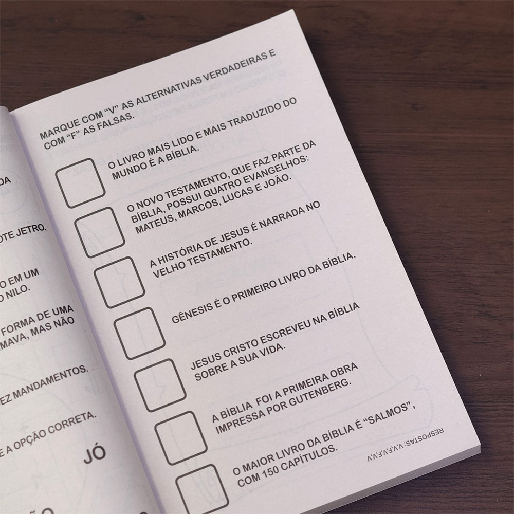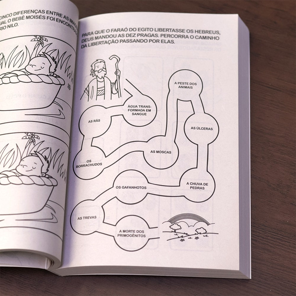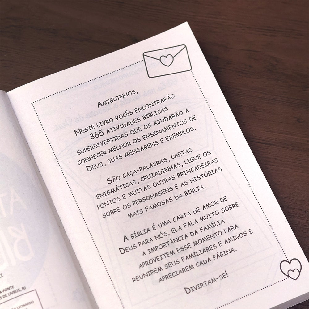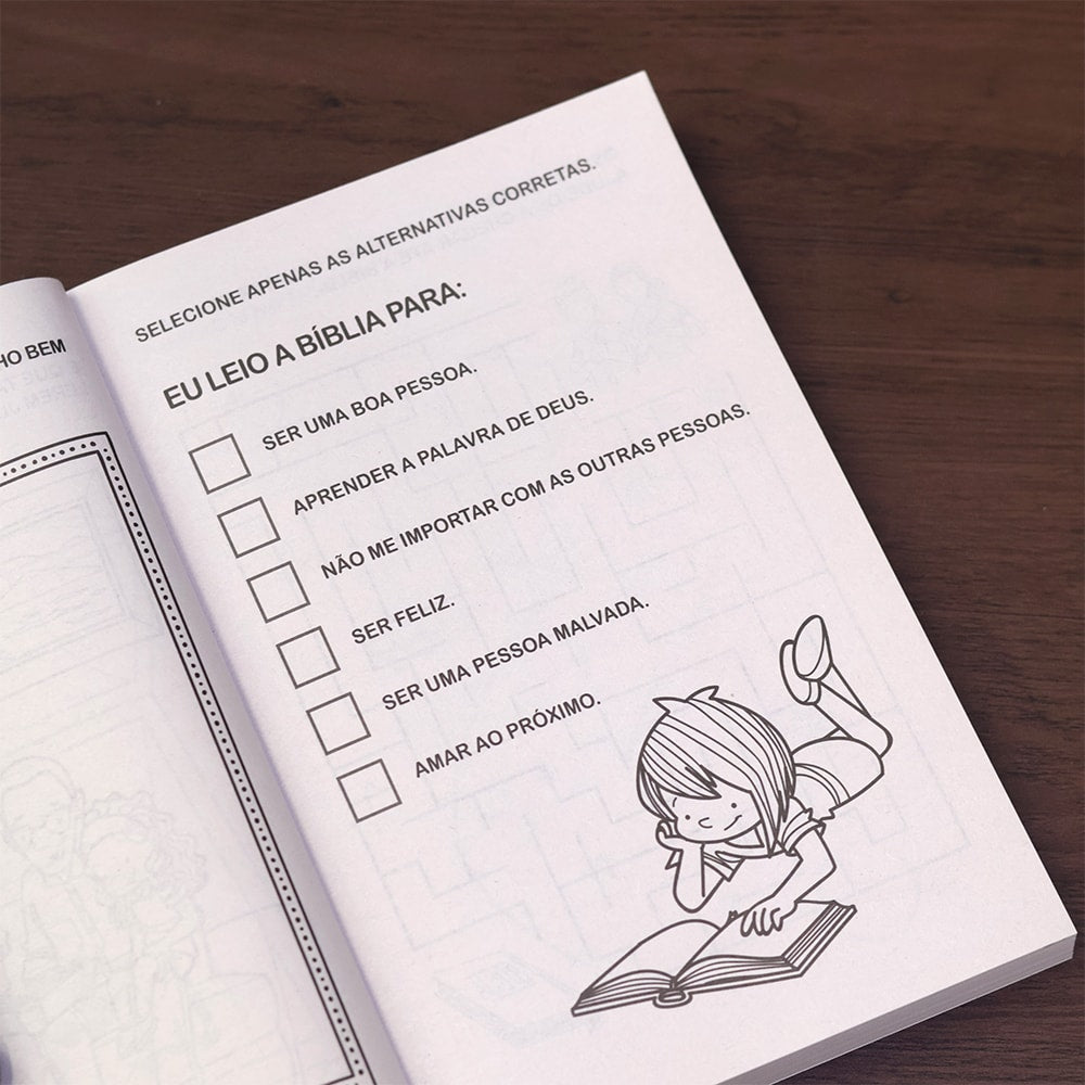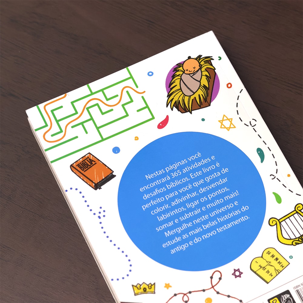 Nestas páginas você encontrará 365 atividades e desafios bíblicos. Este livro é perfeito para você que gosta de colorir, adivinhar, desvendar labirintos, ligar os pontos, somar e subtrair e muito mais. Mergulhe neste universo e estude as mais belas histórias do Antigo e do Novo Testamento.