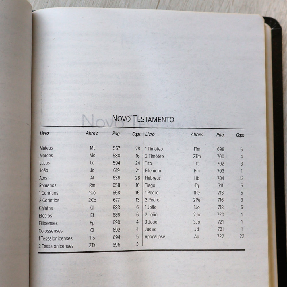 Traz a versão João Ferreira de Almeida Revista e Corrigida, sendo a versão mais consagrada e mais usada pelos evangélicos do Brasil. Traduzida dos textos originais, tem como destaque a linguagem elegante e erudita.