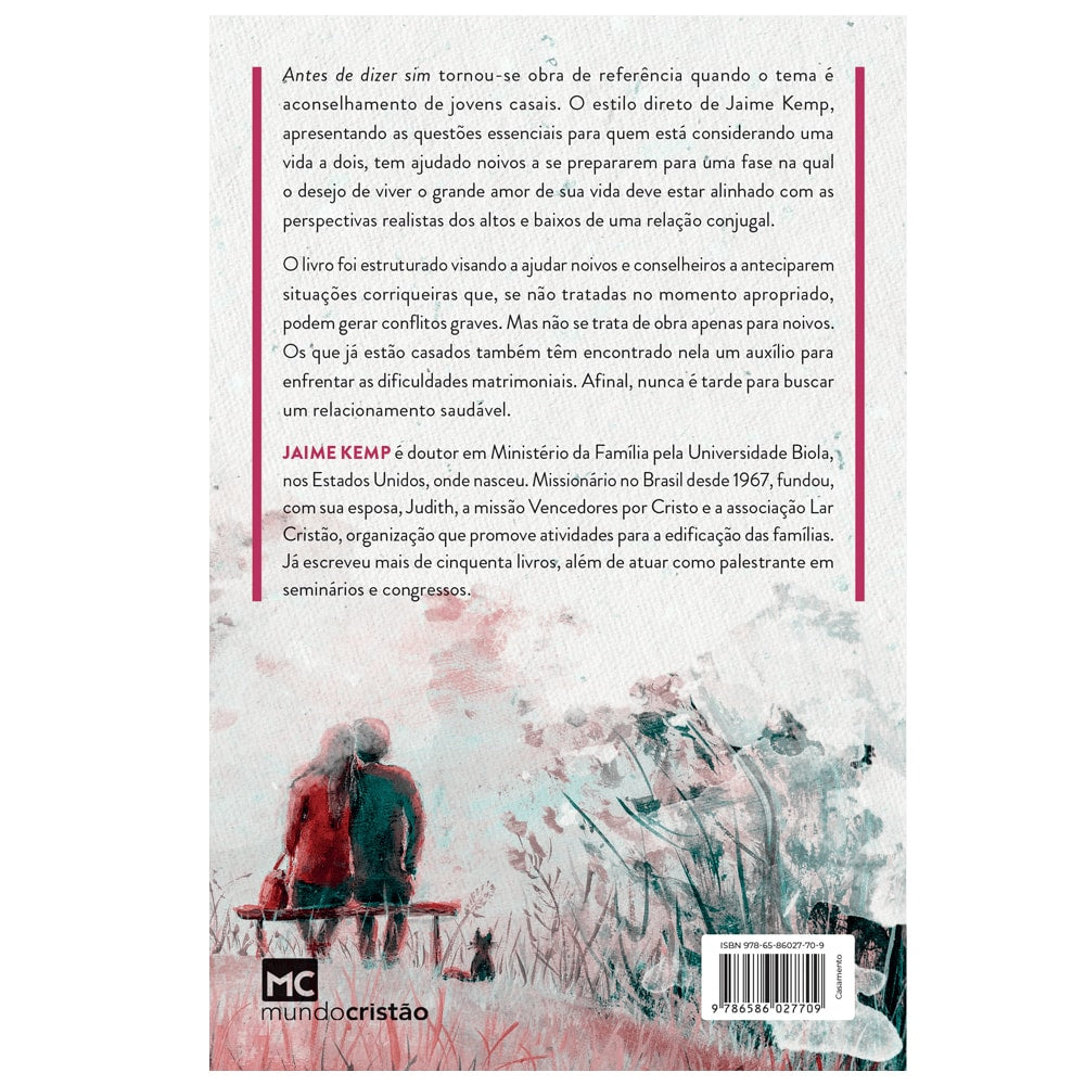 Um guia para noivos e seus conselheiros Manual indispensável para pastores e conselheiros e um guia fundamental para os noivos, Antes de dizer sim, de Jaime Kemp, traz uma orientação clara, segura e objetiva quanto aos propósitos de Deus em relação ao matrimônio.
