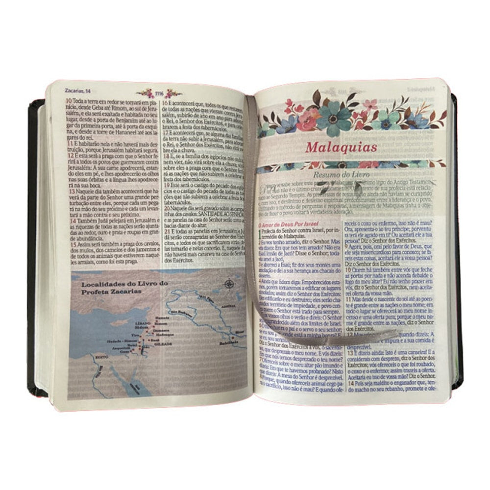 A Bíblia de Estudo da Mulher Sábia foi criada para o público feminino, com recursos que facilitam a leitura e reflexão das Escrituras. Oferece aplicações práticas para mulheres em diferentes papéis, como mãe, sogra, nora e amiga. Com a versão Almeida Revista e Corrigida (ARC), traduzida por João Ferreira de Almeida, ela conta com tecnologia full color, mapas coloridos e destaque para promessas, além de apresentar as palavras de Deus em azul e as palavras de Jesus em vermelho.