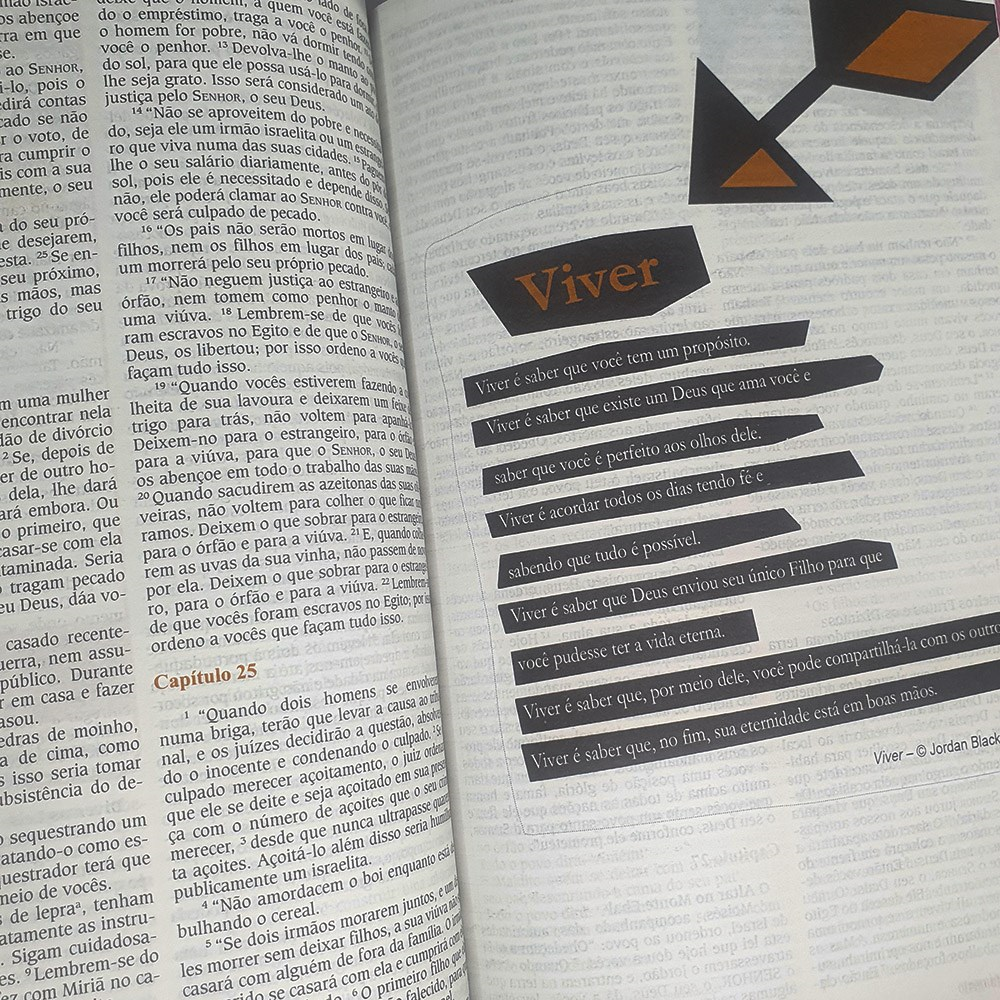 A Bíblia é direciona para os jovens cristãos, com a LIVE é descoberto um mundo surpreendente sobre o Criador, onde o jovem estará livre para espalhar a fé nas folhas desta Bíblia e no mundo virtual. O leitor se sentirá motivado a expressar pensamentos, sentimentos ou dúvidas, e entenderá que Deus é a prioridade número UM deles, e melhor amigo.
