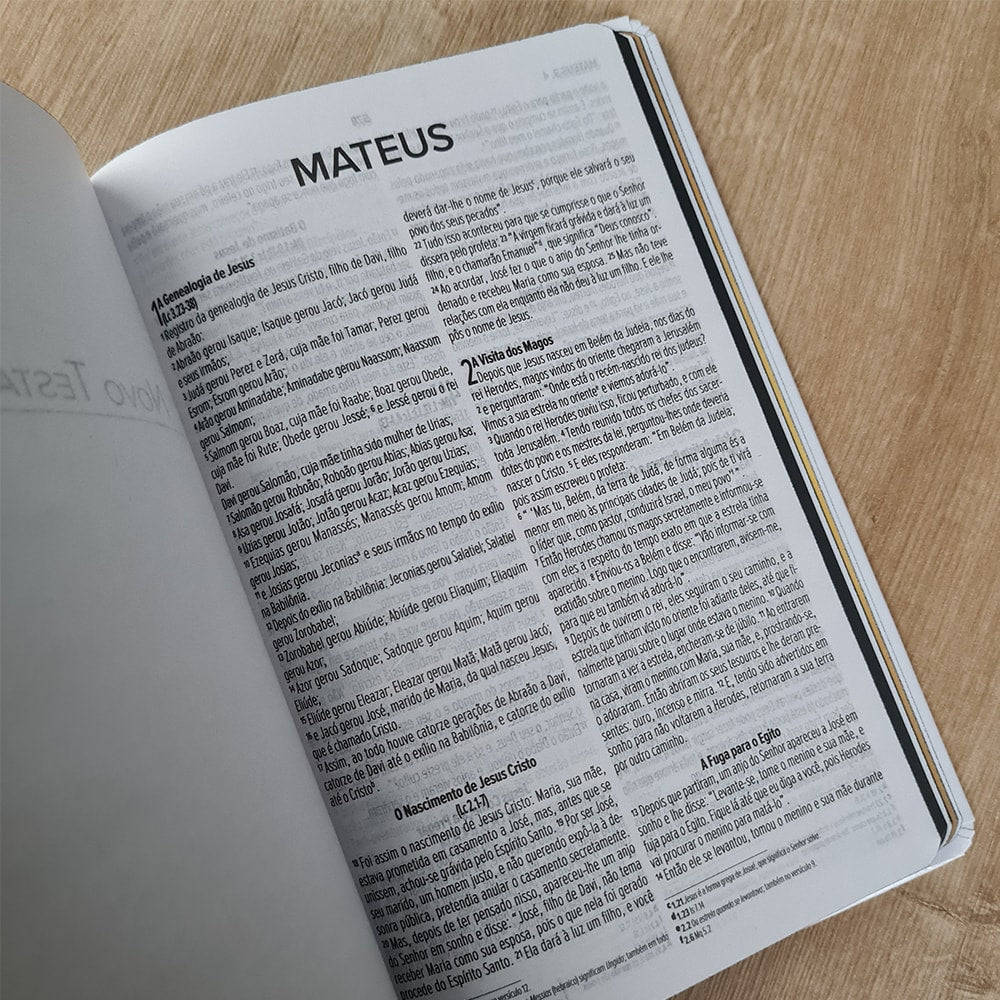 Bíblia Sagrada, com a linguagem na versão NVI (Nova Versão Internacional). Dentre as versões da bíblia ela se torna uma das mais modernas e preservando a clareza do texto, permanecendo fiel aos Escritos originais.