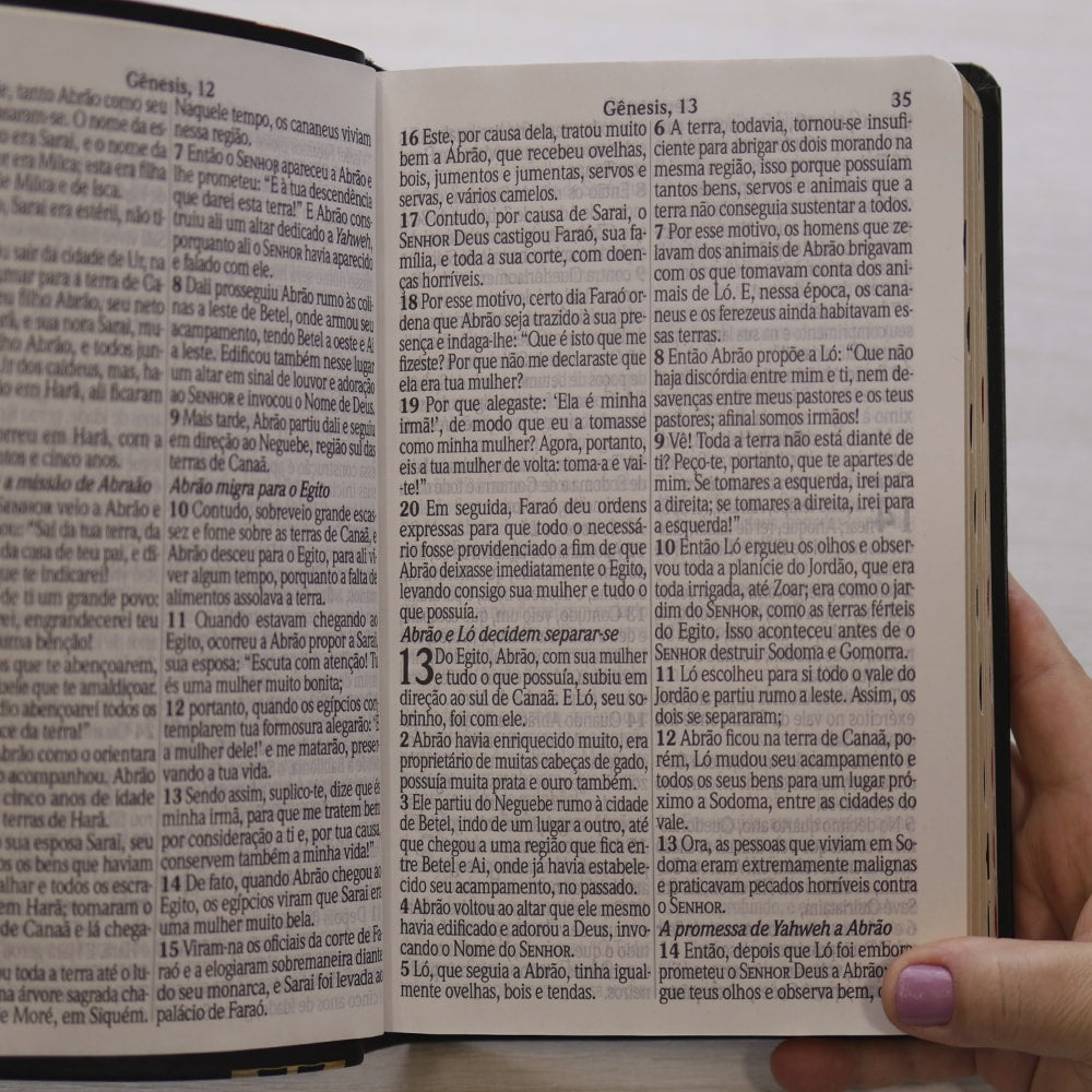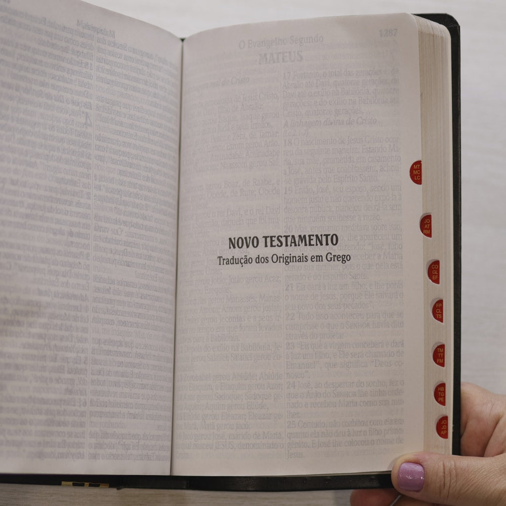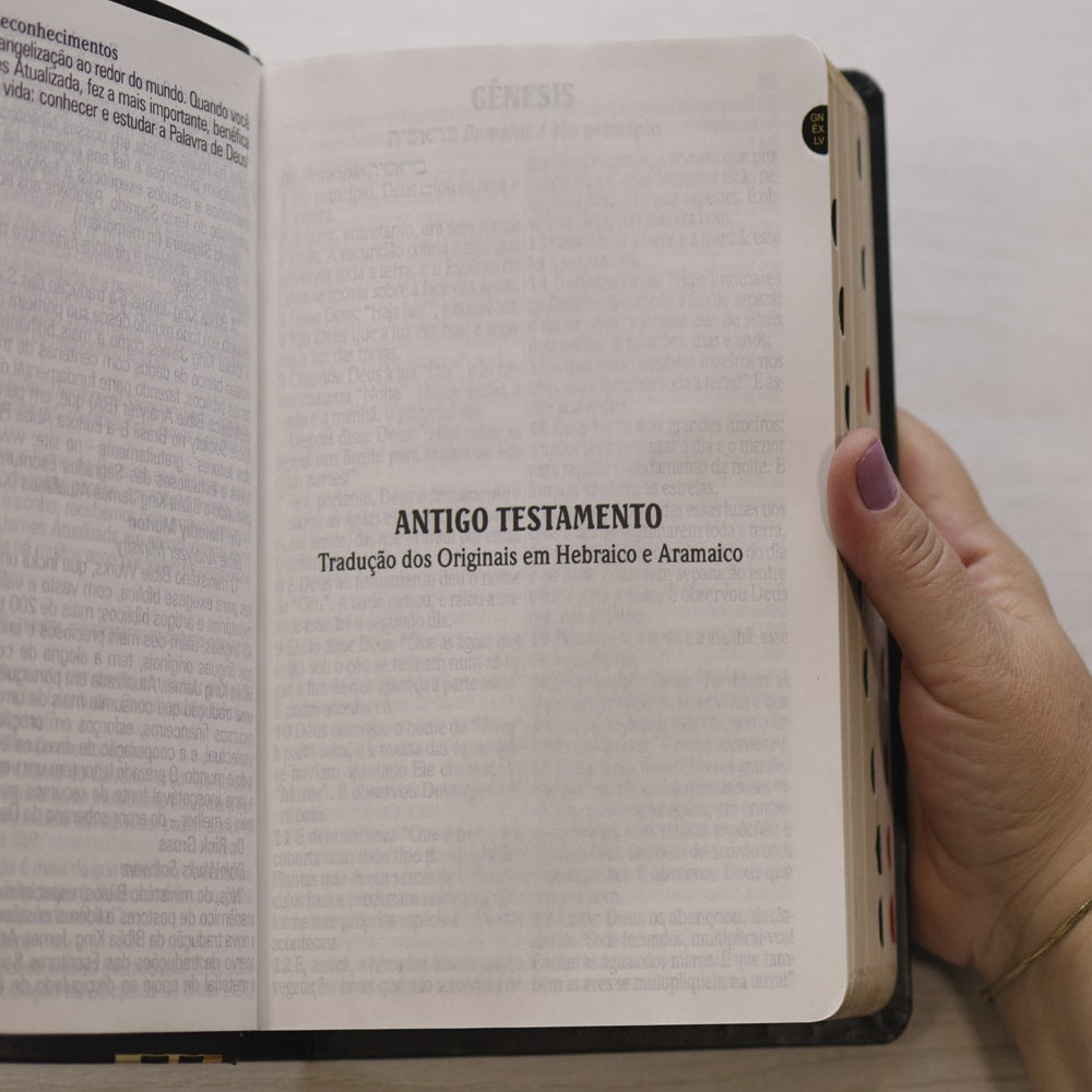 Sua capa de Arabesco Preta combina sofisticação e modernidade, tornando a Bíblia um item não só espiritual, mas também estiloso.