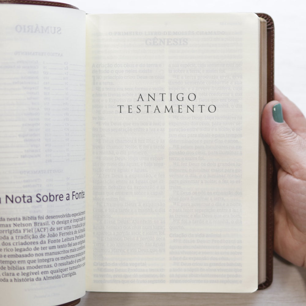 Baseada na Almeida Corrigida Fiel (ACF), esta Bíblia preserva a rica tradição de João Ferreira de Almeida. A fonte Leitura Perfeita, desenvolvida exclusivamente pela Thomas Nelson, combina os melhores avanços tipográficos, resultando em letras claras e legíveis em qualquer tamanho. Isso garante uma leitura confortável e autêntica, refletindo a fidelidade ao texto original, com autoridade e ancorada nos manuscritos mais confiáveis.
