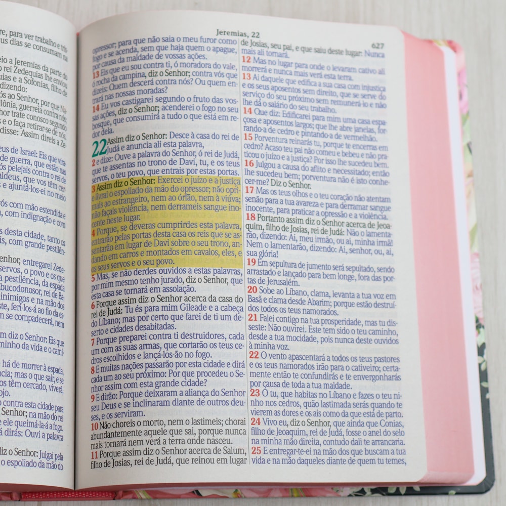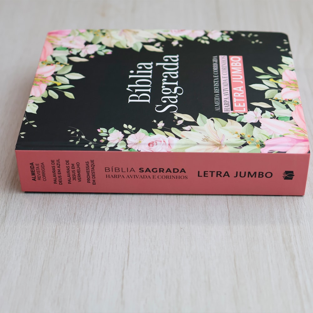 Título: | Bíblia Sagrada | ARC | Harpa Avivada e Corinhos | Jumbo | Capa Dura Preta com Flores |