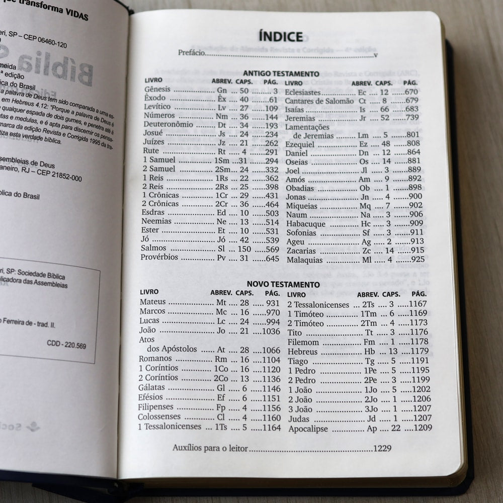 Esta Bíblia possui visual agradável, de fácil leitura, letra grande, borda dourada, harpa cristã, notas, referências e Edição Almeida Revista e Corrigida. Perfeita para sua meditação na Palavra de Deus e também, um ótimo presente para amigos e familiares.