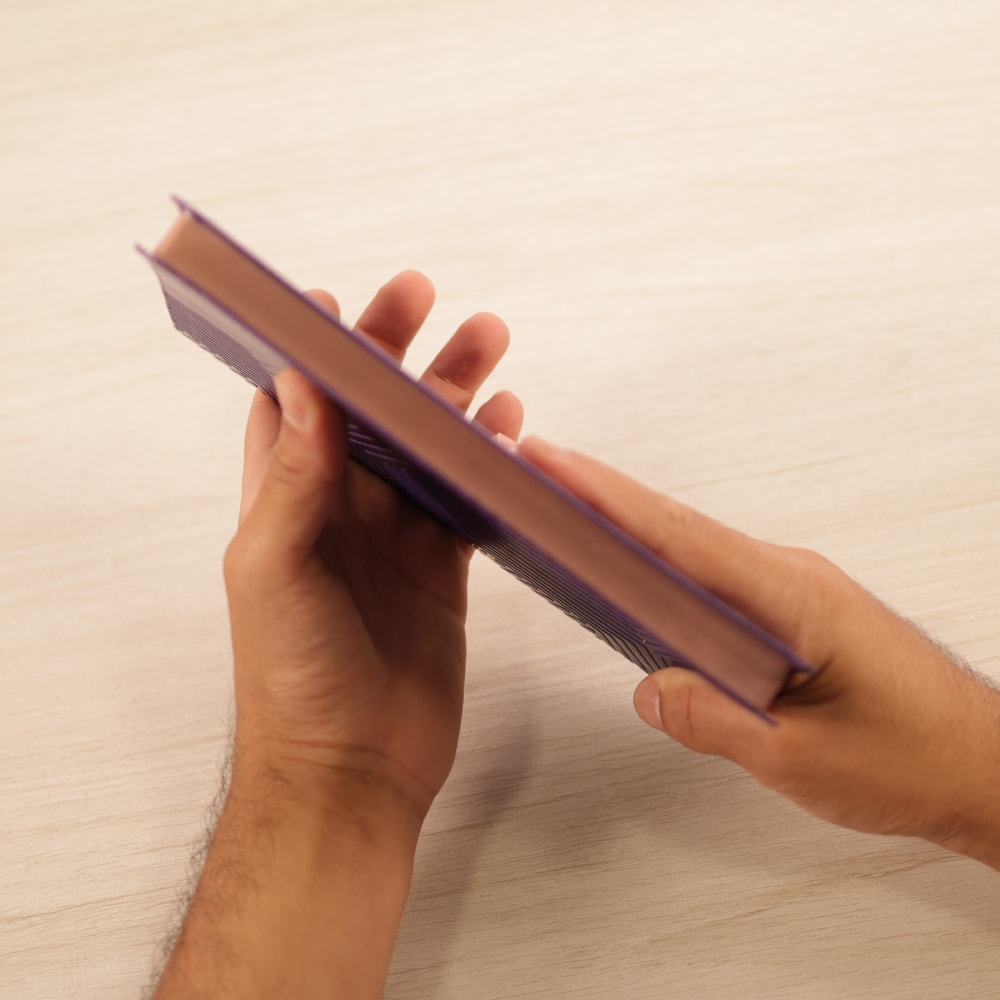 - Extremamente fina, com apenas 1,5 cm de lombada.