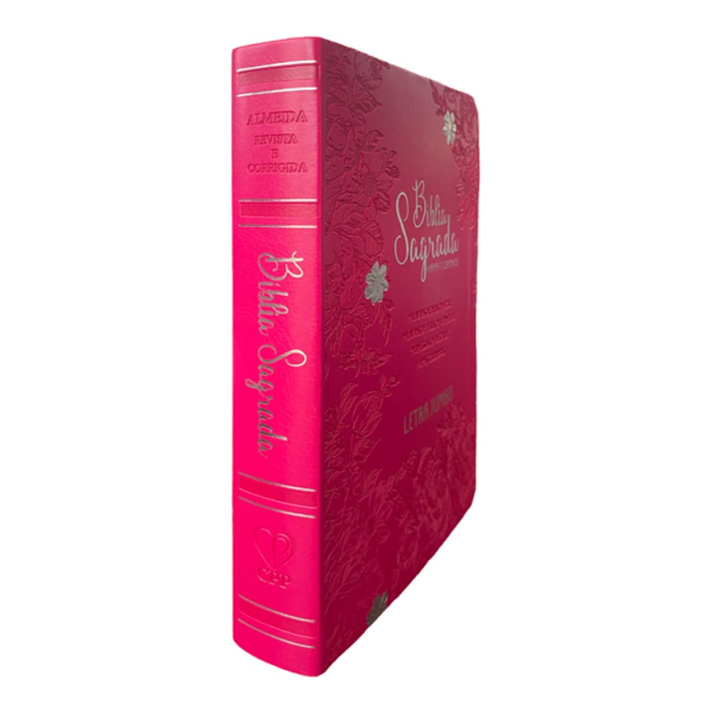 Bíblia Sagrada Letra Jumbo | ARC | Harpa Avivada e Corinhos | Capa PU Luxo Jardim Pink