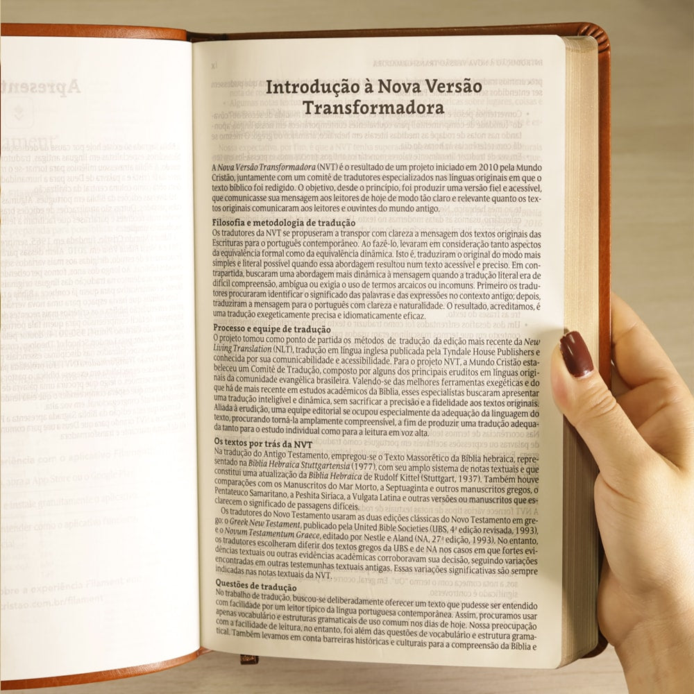 A Bíblia Filament é a união perfeita entre a clareza da Nova Versão Transformadora (NVT) e a tecnologia moderna, oferecendo uma leitura imersiva e interativa como nunca antes em língua portuguesa.