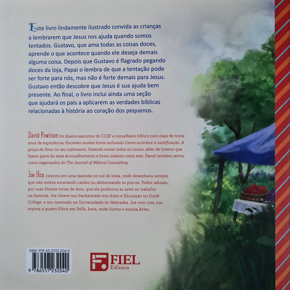 Esste livro lindamente ilustrado convida as crianças a lembrarem que Jesus nos ajuda quando somos tentados. Gustavo, que ama todas as coisas doces, aprende o que acontece quando ele deseja demais alguma coisa. Depois que Gustavo é flagrado pegando doces da loja, Papai o lembra de que a tentação pode ser forte para nós, mas não é forte demais para Jesus. Gustavo então descobre que Jesus é sua ajuda bem presente. Ao final, o livro inclui ainda uma seção que ajudará os pais a aplicarem as verdades bíblicas relacionadas à história ao coração dos pequenos.