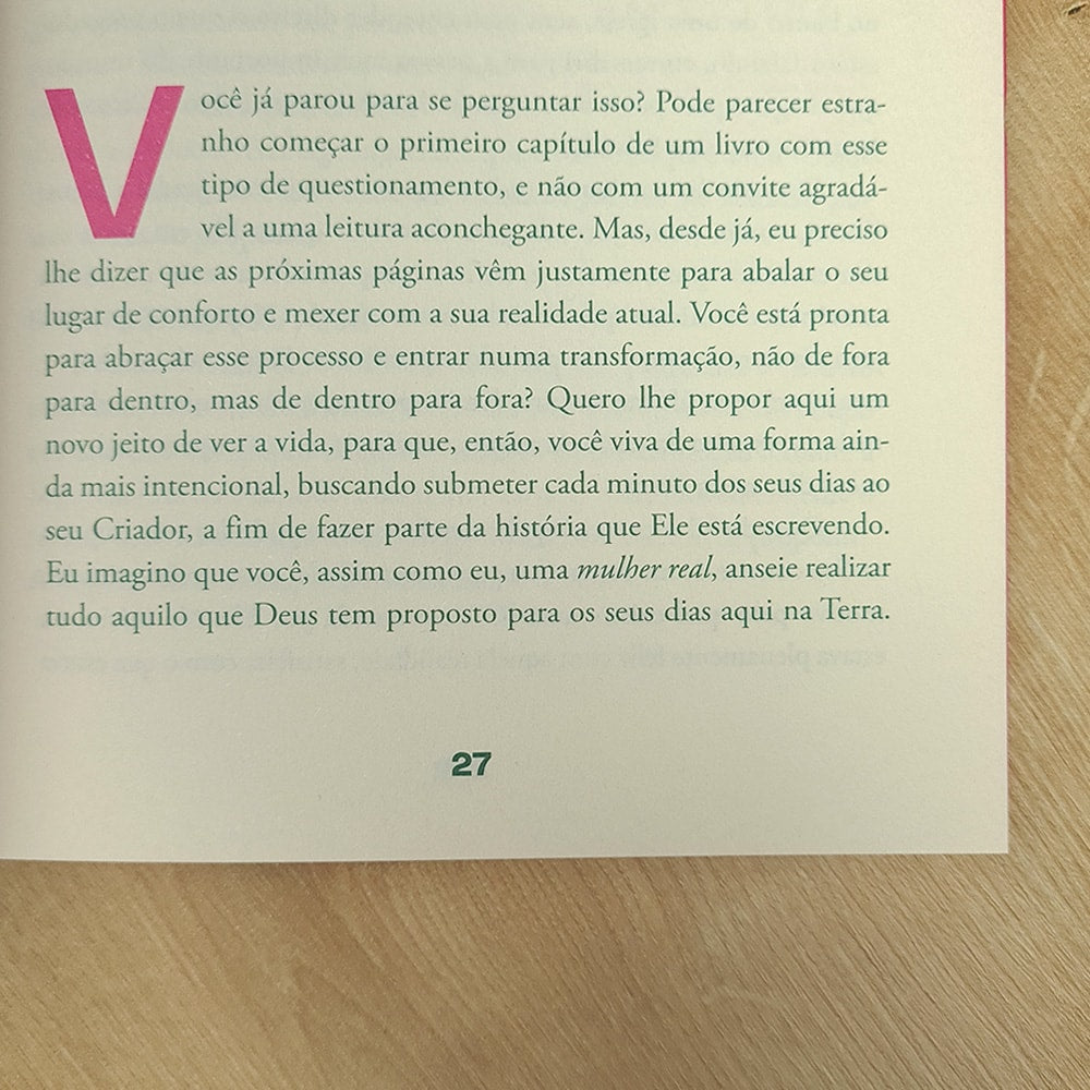 Em Mulher real, recebemos um convite para, enfim, livrarmo-nos da inércia espiritual e das idealizações errôneas acerca do nosso papel, a fim de submetermos todos Os nossos dias a Deus e caminharmos na plenitude de Seus planos para nós. Você está pronta?