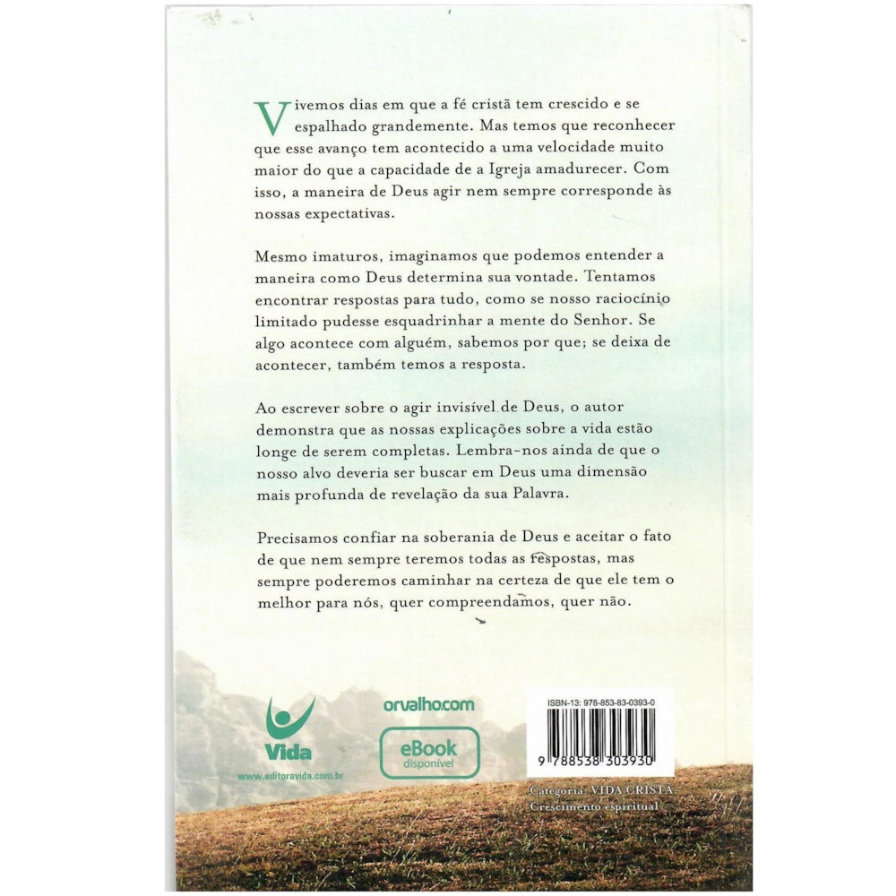 Este livro traz um um ensino profundo sobre o tratamento de Deus conosco e as formas imprevisíveis que o Senhor utiliza a fim de produzir em nós maturidade. As Escrituras Sagradas revelam que os pensamentos de Deus são mais elevados que os nossos. Nossa mente não consegue compreender a forma e os caminhos que o Senhor utiliza em Seu agir. Contudo, embora invisível aos nossos olhos, o agir de Deus é certo em nossas vidas! Você será tocado por uma revelação mais profunda da soberania e grandeza de Deus e desafiado a uma atitude de fé e entrega aos cuidados do Todo-Poderoso. A Fé cristã tem crescido e se espalhado pelo nosso país de forma surpreendente. Devemos reconhecer que a velocidade de ganhar almas foi muito maior do que a capacidade da igreja se amadurecer. A maneira que Deus age nem sempre corresponde às nossas expectativas. Devemos compreender o modo de como Deus define a sua vontade, mesmo imaturos. Tentamos encontrar respostas para todas as perguntas, como nosso conhecimento delimitado conseguisse esquadrinhar o pensamento do nosso Senhor e Salvador Jesus Cristo. Se algo acontece com alguma pessoa, sabemos por que; se deixa de acontecer, também sabemos a resposta. Neste livro O Agir Invisível de Deus o autor Luciano Subirá comprova que as nossas justificações sobre a vida estão longes de serem respondidas. Luciano Subirá Lembra-nos que nosso alvo deve ser buscado em Deus em uma dimensão mais profunda de revelação da sua palavra. Necessitamos acreditar na soberania de Deus e aceitar a realidade de que nem sempre encontraremos todas as respostas, mas sempre poderemos percorrer nossa jornada na certeza de que ele tem o melhor para nós, quer compreendamos, quer não.