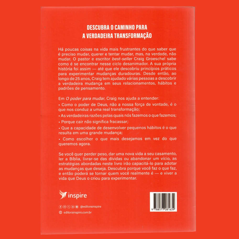 Há poucas coisas na vida mais frustrantes do que sentir a necessidade de mudar, tentar fazer mudanças, e ainda assim não conseguir. Craig Groeschel, pastor e autor best-seller, compartilha sua própria jornada através desse ciclo desanimador e revela princípios práticos para alcançar mudanças duradouras. Com mais de 25 anos de experiência ajudando pessoas a descobrir a verdadeira transformação em seus relacionamentos, hábitos e padrões de pensamento, Groeschel oferece insights valiosos em seu livro "O Poder para Mudar".