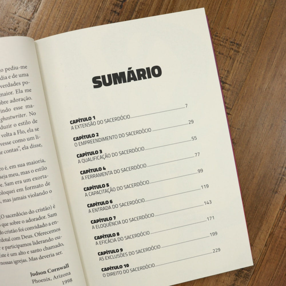 Um livro profundo e envolvente, Desenvolvendo Seu Sacerdócio nos faz rever nossos conceitos sobre louvor e adoração e mais ainda sobre nosso lugar na adoração, seja você o pastor de uma igreja grande ou pequena, um líder de louvor, um membro no meio da congregação, uma ocupada dona-de-casa, um empresário bem-sucedido ou um estudante. Cada cristão é chamado para oferecer ao Senhor o seu sacrifício de louvor. Este é nosso alto e santo chamado.